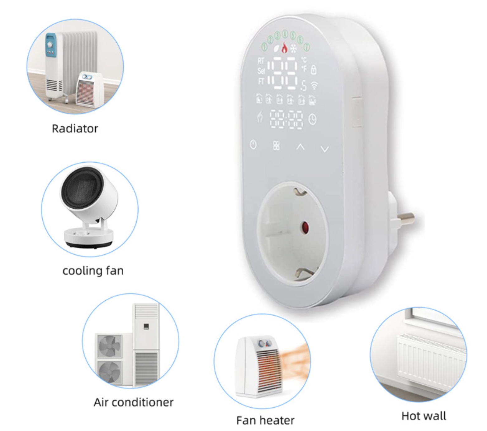 A kívánt hőmérséklet beállítása után a beépített hőmérséklet-szonda megméri a környezeti hőmérséklet valós értékét, és a kívánt célértéknek megfelelően szabályozza a csatlakoztatott fűtőtestet vagy klímaberendezést.